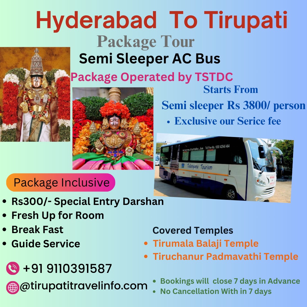 Planning to travel from Hyderabad to the holy destination of Tirupati. Telangana Tourism offers a dedicated bus package tailored to your needs. Let me assist you in getting comprehensive information about the trip, including the itinerary, pricing, inclusions, and exclusions.